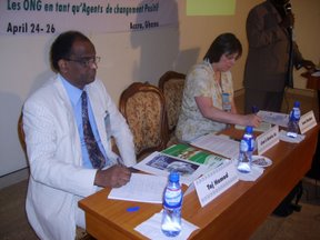 Professor Oumar Ndongo, General Secretary of the West Africa Civil Society Forum, offered the keynote address, with the presentation made on his behalf by Barrister U. D. Ikoni. In the address, Mr. Ikoni identified the challenges to the development of society, including poverty, human rights issues, refugee and inter border issues, citizen participation, health care, water, sanitation, and so forth. He sees the NGOs as filling the gap to effect positive social change in society. He dwelt extensively on the nature of NGOs from various platforms. He was able to bring out the localized nature of NGOs and the fact that some appeared to be transient, responding to specific issues. He further stated that NGOs have carved a niche for themselves in responding to development issues owing to their efficiency, prudent resource management, and result-based approaches to their activities. He noted that NGOs had done little in designing a rural based strategy since most of the underserved people live in rural areas and that NGOs are slow to develop alternative survival strategies.